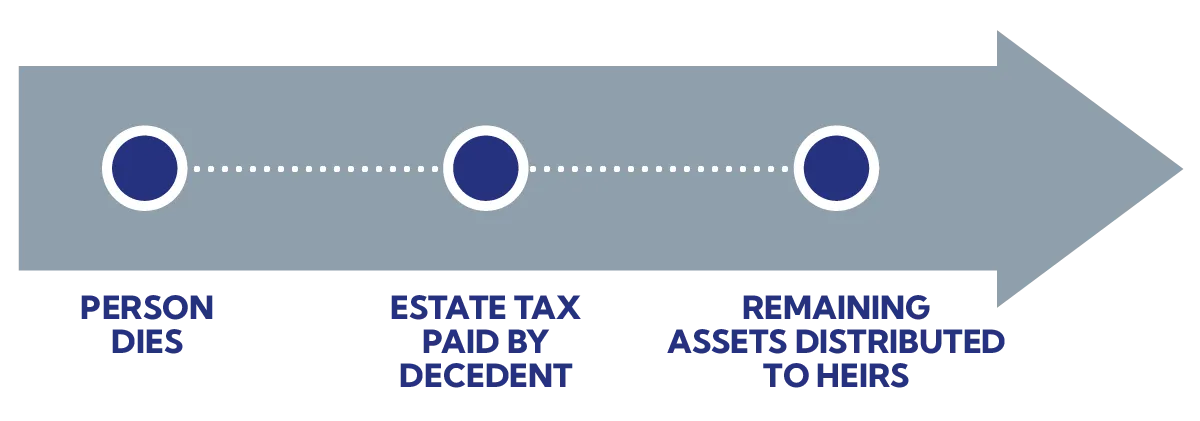 An estate tax, as defined by the IRS, is a tax on your right to transfer property at your death. Unlike an inheritance tax, which is paid by the surviving heirs, an estate tax is assessed on the value of the decedent’s estate before being passed down to heirs.